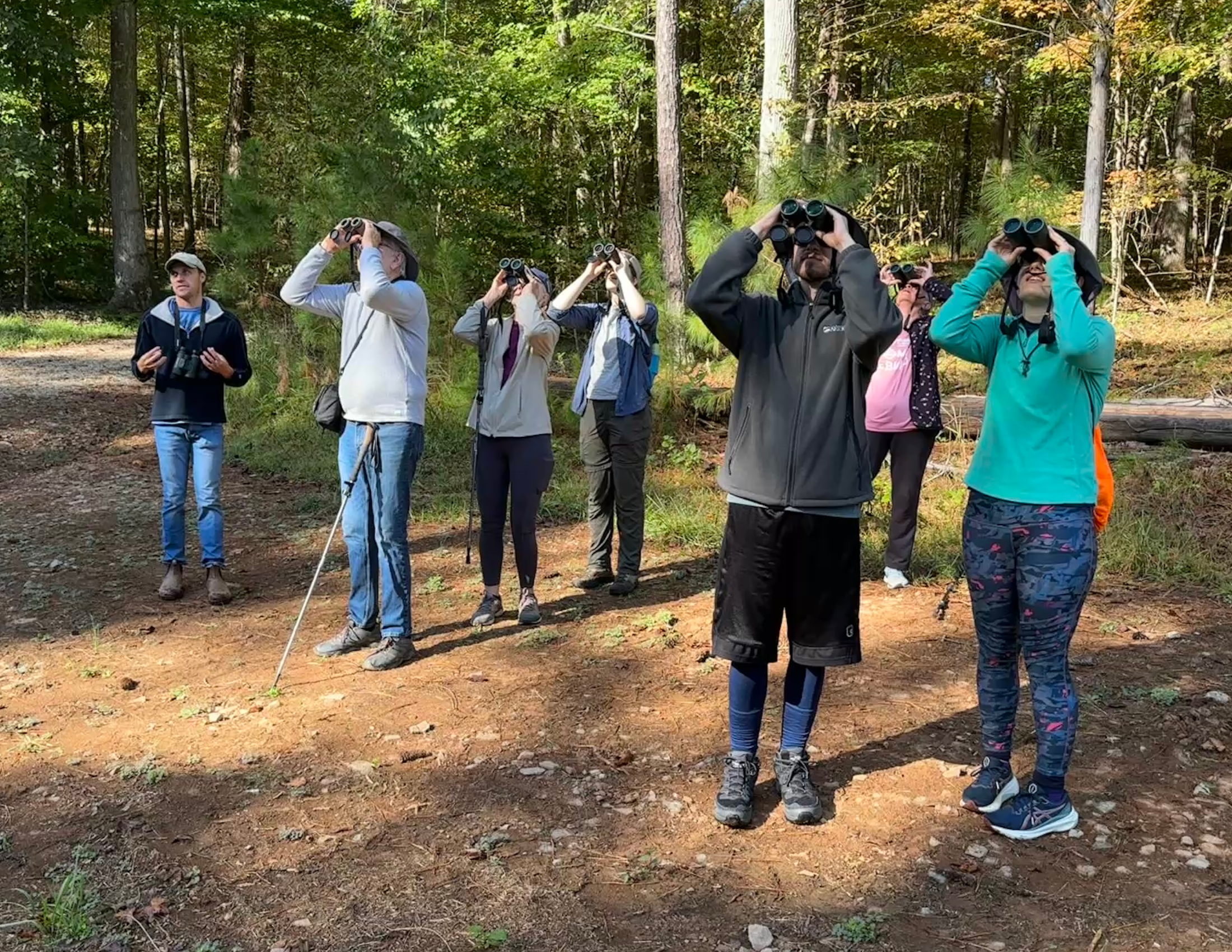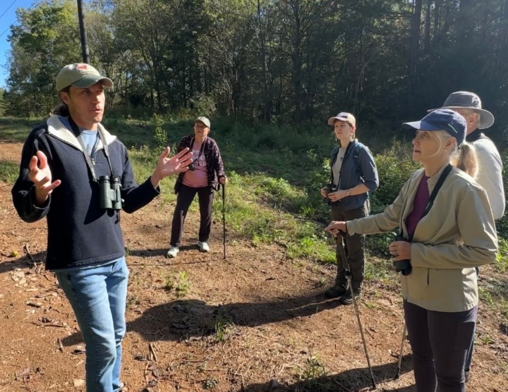 Alex Nickley, a Duke staff member, an avid birder, and advisor for the Duke Birding Club, led engaging conversations about the birds of our region. Alex provided tips for beginner birders, shared insights into how biological characteristics of common birds indicate their diet, habitat, and behavior, and led his groups on hikes to listen and look for our feathered friends.